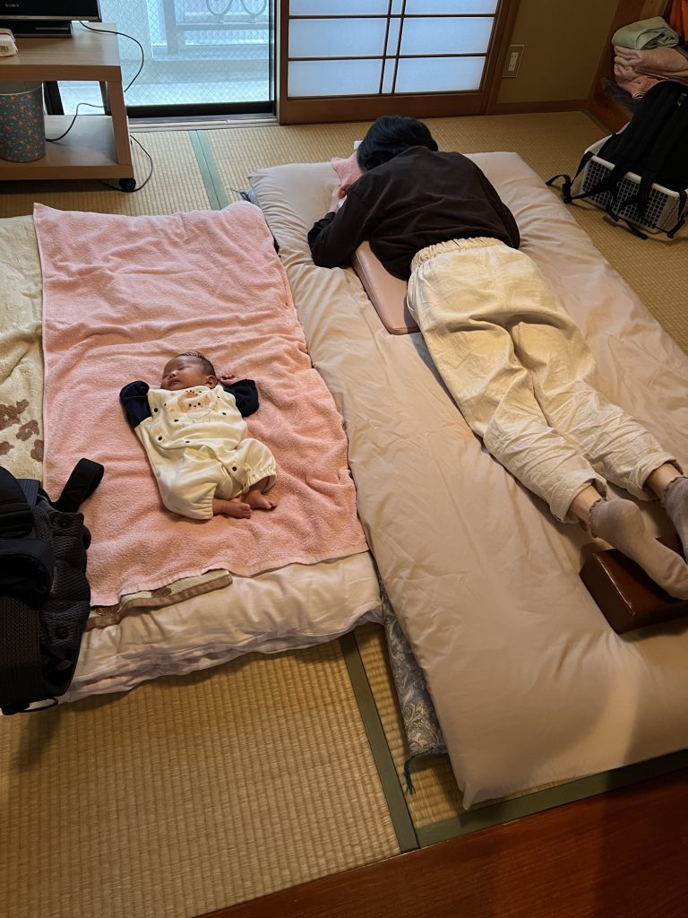 生後1か月のお子さんを隣に施術